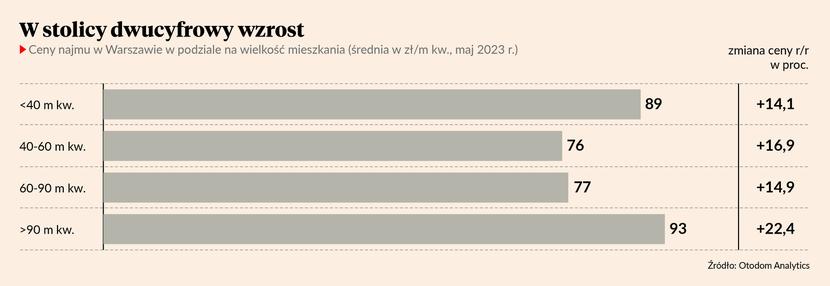 – Czynsze najmu – co jest dość szczególne w tym cyklu - spadają w przypadku mieszkań małych. To one najbardziej „wystrzeliły” w górę w 2022 r. Obecnie jakaś część tej zwyżki jest oddawana. Jeśli jednak spojrzymy na większe lokale, to tendencja jest odwrotna. Tu czynsze obecnie rosną - mówi Jan Dziekoński, założyciel portalu analitycznego FLTR.pl.