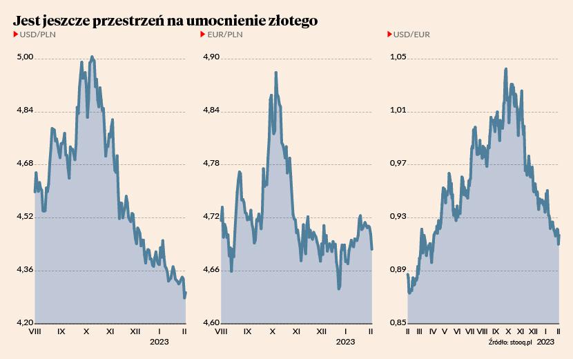 – W Polsce stopy są stabilne od pewnego czasu i nic nie wskazuje, że to się w najbliższym czasie zmieni. Biorąc pod uwagę złagodzenie stanowisk głównych banków centralnych, sytuacja krótkoterminowo stała się pozytywna dla złotego. Mniej podwyżek w USA i strefie euro oznacza mniejszą presję na złotego. Ta sytuacja jest przejściowa – jedynie ograniczone umocnienie złotego pokazuje, że ten potencjał aprecjacyjny polskiej waluty jest ograniczony. Widzimy na horyzoncie pewne czynniki, które sprawią, że w najbliższych tygodniach kurs złotego wobec euro będzie się kierował w okolice 4,73-4,74. Obecną sytuację traktujemy jako korektę przed dalszymi próbami osłabiania złotego zarówno wobec euro, jak też dolara – mówi Jarosław Kosaty.