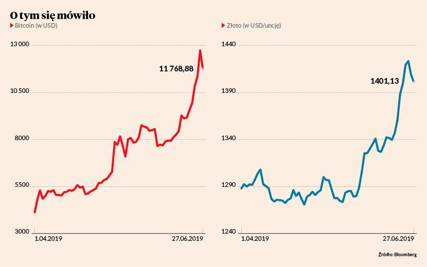 W ten sposób banki centralne ryzykują utratę zaufania do systemu fiducjarnego pieniądza. Pieniądza, który jest cokolwiek warty tylko dlatego, że w to wierzymy. Gdy wiara ta się ulotni, wartość „papieru” emitowanego przez bank centralny szybko spada do zera. To właśnie ryzyko tej utraty zaufania w mojej ocenie stoi za czerwcowym rajdem złota i bitcoina. Królewski metal przez ostatni miesiąc podrożał o 10 proc. (licząc w USD) i po raz pierwszy od 6 lat przebił się powyżej 1400 USD za uncję. Takie wybicie z 3,5-letniej konsolidacji można odczytać jako powrót hossy na rynek złota, choć w krótkim terminie metal narażony jest na korektę.