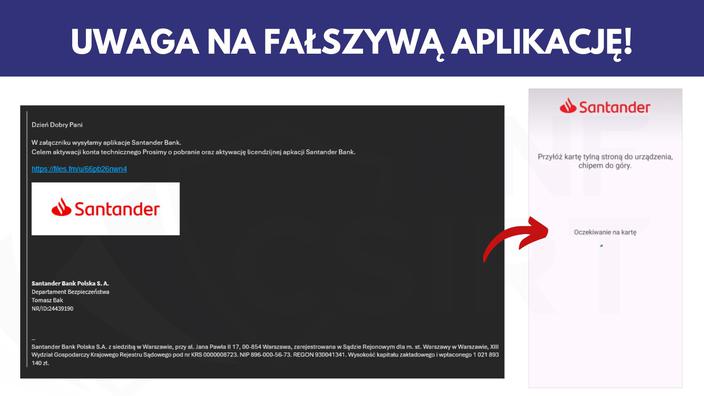 Pojawiło się także oszustwo wykorzystujące znane marki bankowe. W ostatnim tygodniu CSIRT KNF ostrzegał przed atakami na klientów korzystających z bankowości mobilnej Santander Banku Polska i PKO Banku Polskiego. W obu przypadkach przestępcy rozsyłali linki do fałszywej aplikacji bankowej. W trakcie jej aktywacji użytkownik proszony był o przyłożenie karty do telefonu w celu odczytu danych z modułu zbliżeniowego (NFC).