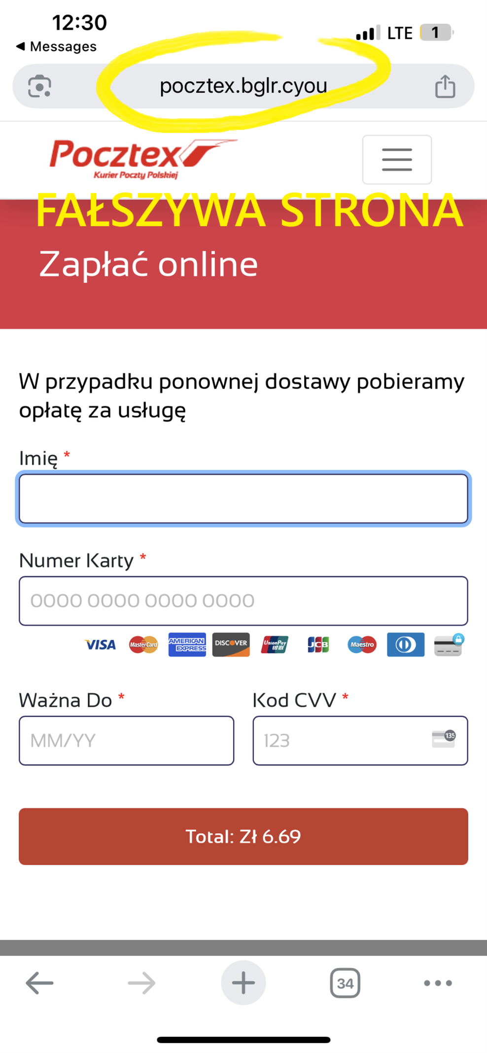 W treści wiadomości znajduje się link prowadzący do spreparowanej strony phishingowej, która podszywa się pod oficjalny serwis Poczteksu, usługi kurierskiej Poczty Polskiej. Celem ataku jest wyłudzenie danych osobowych użytkownika. Linki prowadzą do domen znajdujących się na liście ostrzeżeń CERT Polska.