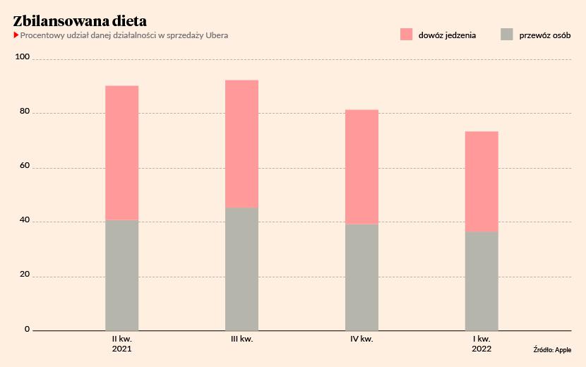 DoorDash i Uber zyskały na popularności jedzenia w dostawie podczas pandemii i jest to segment, który stanowi obecnie podwaliny zysków spółek oferujących aplikacje outsourcingowe. Mimo spadku obrotów w porównaniu do pandemii i mocnej konkurencji ze strony GrubHuba, znanego w Polsce jako Pyszne.pl, zyski Ubera i DoorDasha z dostaw w II kwartale 2022 r. wzrosły odpowiednio o 31 proc. i 23 proc. r/r.