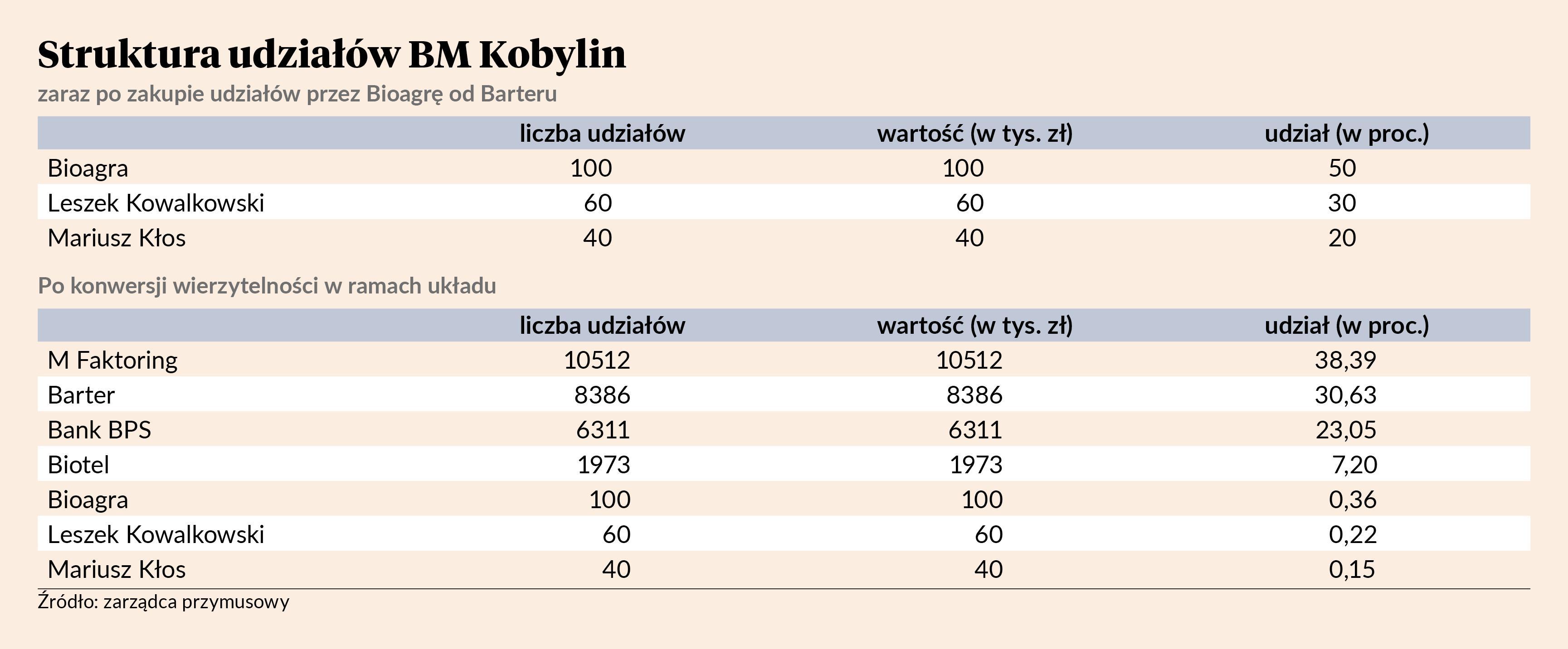 W kwietniu 2016 r. Bioagra kupiła 50 proc. udziałów BM Kobylin (zmiana w KRS, m.in. wykreślenie firmy Barter jako wspólnika, nastąpiła w maju), ale gdy przedstawiciele nowego inwestora weszli do zarządu firmy, złapali się za głowy.