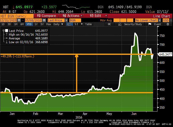 Od końca 2015 roku wartość bitcoina wzrosła o 80 proc. osiągając 17 czerwca najwyższy kurs od 2,5 lat, wynoszący 777,01 USD.