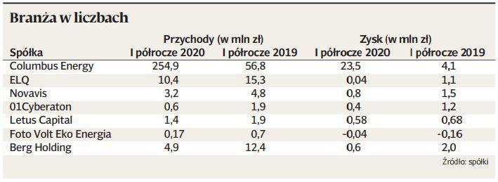 Wśród firm, które w strategiach zakładały rozwój na rynku energii odnawialnej, jest ELQ, budująca farmy fotowoltaiczne. Partnerem w części projektów ma być Columbus Energy. „Zarząd emitenta wierzy, że dynamiczny rozwój OZE w Polsce oraz podpisana umowa […] wpłyną na dynamiczny rozwój spółki i poprawę wyników finansowych w drugim półroczu 2020, w tym na generowanie zysku na poziomie operacyjnym w kolejnych kwartałach.” — pisała spółka w raporcie z wynikami za pierwsze półrocze, które zakończyło się wyraźnym spadkiem przychodów i zysku netto. Kurs zareagował dużym spadkiem — od szczytu osunął się o niemal połowę. Krzysztof Zawadzki, prezes częstochowskiej firmy, tłumaczy słabsze wyniki odmiennym niż przed rokiem rozkładem zamówień i wynikającym z tego innym harmonogramem produkcji.