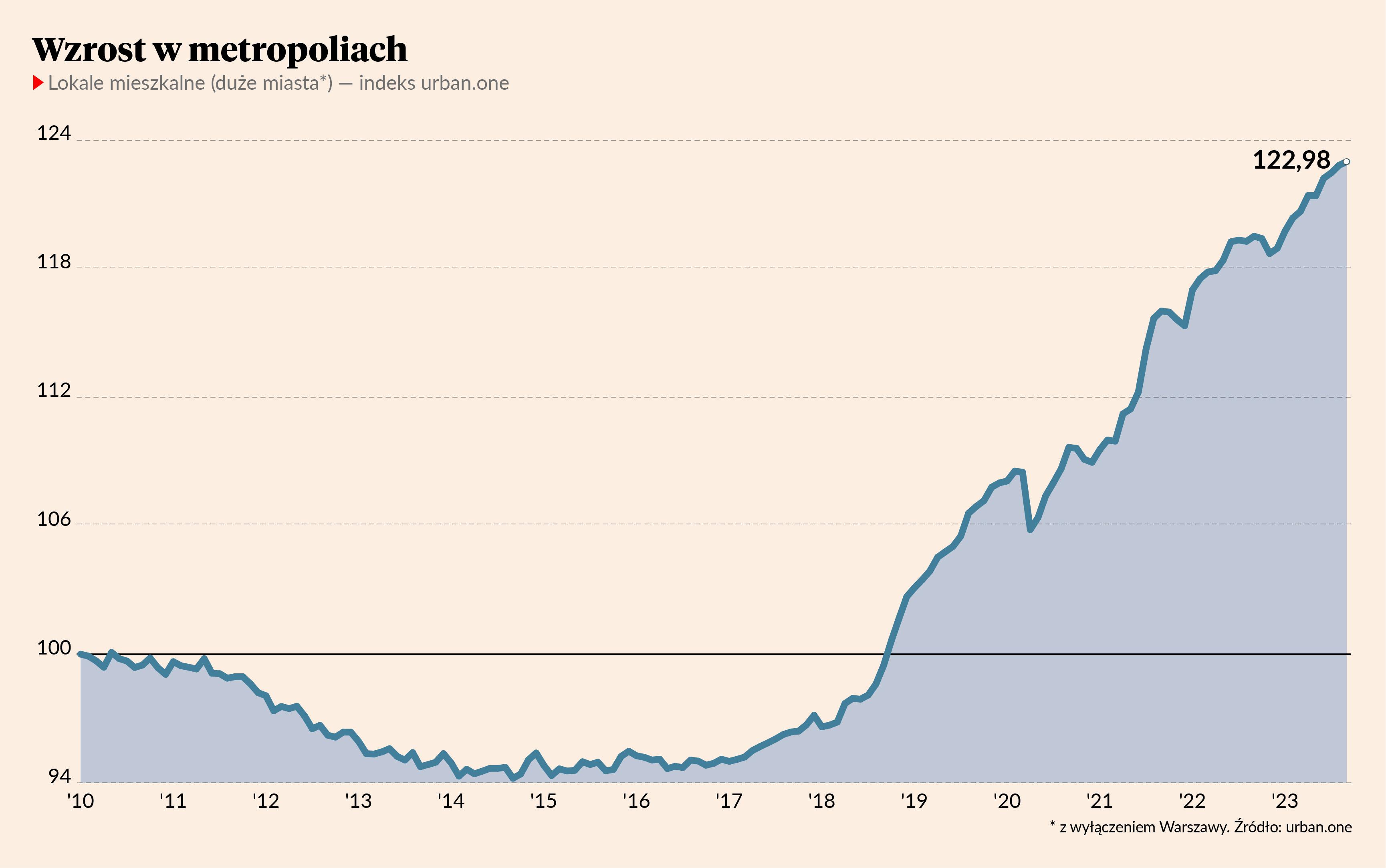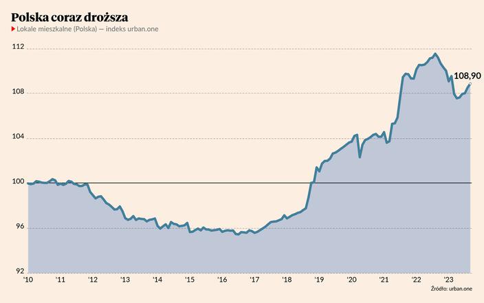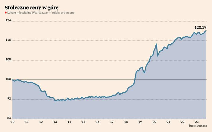 Większą zwyżkę odnotowano w Warszawie - urban.one wyniósł 120,19 pkt, o 0,48 pkt więcej niż miesiąc wcześniej.