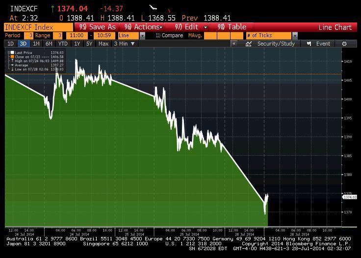 W poniedziałek rano RTS, „dolarowy” indeks rynku akcji, spadał o 1,7 proc. Główny indeks moskiewskiej giełdy, MICEX, tracił 1,2 proc.