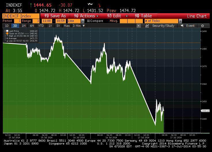 MICEX znalazł się najniższej od sześciu tygodni, a dolarowy RTS tracił nawet ponad 3 proc. po tym, jak Unia Europejska i USA ogłosiły kolejne sankcje wobec Rosji w związku z jej działaniami w sprawie konfliktu na Ukrainie.