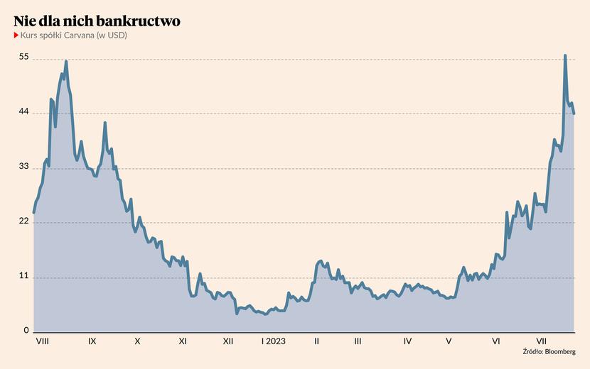 Najpopularniejszym wyborem spekulantów są teraz akcje Carvany, internetowego sprzedawcy samochodów używanych w Stanach Zjednoczonych. W 2022 r. w wielu plebiscytach wskazano ją jako najgorszą spółkę roku – nic jednak dziwnego, jej kurs, który u szczytu wynosił 240 USD, spadł o 98 proc. w związku z problemami finansowymi. Zadłużenie prawie wpędziło Carvanę w bankructwo.