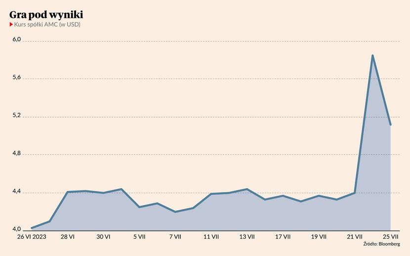 Teraz uwaga skupiona jest bardziej na drugim ulubieńcu, sieci kin AMC. Spekulanci dwa lata temu tchnęli w nią życie i do dzisiaj mają do niej słabość licząc, że ta wkrótce odwzajemni sympatię i opublikuje zaskakująco dobre wyniki. Dawno oczekiwania nie były tak duże jak teraz – inwestorzy liczą, że rekordowy dla amerykańskich kin weekend, związany z premierą filmów “Barbie” i “Oppenheimer”, jest zwiastunem nowej popularności branży kinowej. Wielu inwestorów gra pod wyniki, które zostaną opublikowane 3 sierpnia.