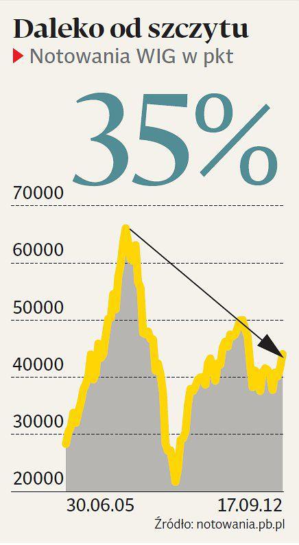 Niestety, tego samego nie da się powiedzieć o rodzimej giełdzie. WIG jest najwyżej od 13 miesięcy, a do poziomu z lipca 2007 r. brakuje jeszcze 35 proc. Z blisko 350 spółek z szerokiego rynku tylko trzy — Puławy, Tylko trzy spółki z WIG zaliczyły w piątek roczne maksimum. W amerykańskim indeksie S&P500było ich aż 110.