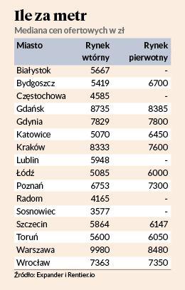 — Dane na temat cen ofertowych nie dają dużych nadziei na to, że w najbliższym czasie ceny spadną. Obecnie wciąż rosną. Jedynym wyjątkiem jest Bydgoszcz, gdzie pozostały na poziomie z lutego. Średnio na całym rynku wzrosły o 5 proc. w ciągu zaledwie trzech miesięcy. Kontynuowanie takiego tempa oznaczałoby, że w ciągu 12 miesięcy wzrost osiągnie aż 21 proc. — mówi Anton Bubiel z Rentier.io.