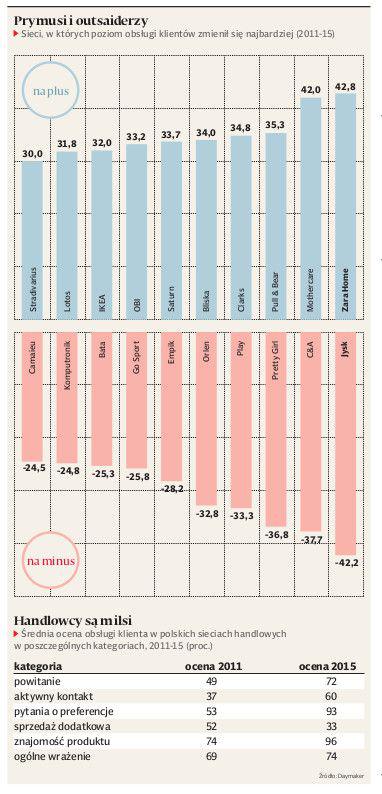 — Poprawa jest imponująca. Sieci lepiej rozumieją znaczenie obsługi klienta, postęp widać niemal w każdym obszarze, zwłaszcza na początku wizyty w sklepie. Bardziej skomplikowane elementy procesu sprzedaży nadal jednak kuleją — mówi Sofia Valentin, dyrektor generalna Daymakera w Polsce. Problemy widać zwłaszcza przy zachęcaniu klientów do zrobienia dodatkowych zakupów.