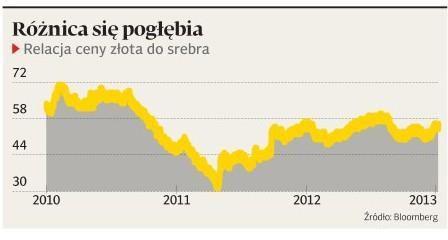 Do połowy XIX w. średni stosunek ceny złota do srebra wynosił 16, ponieważ właśnie tyle razy więcej wydobywano srebra niż złota. Dzisiaj wydobywa się srebra tylko 9 razy więcej. US Geological Survey prognozuje nawet, że zasoby srebra są tylko sześć razy wyższe niż żółtego kruszcu, a Grupa CPM, że pięć. Tymczasem parytet złoto/srebro od marca ubiegłego roku utrzymuje się powyżej 50, a w ostatnich dniach waha się między 54 a 55. I nic tego nie zmienia.