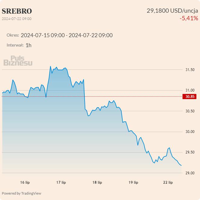 Notowania spotowe srebra spadły w poniedziałek w okolice 29 USD za uncję. Początkowo jednak zareagowały lekką zwyżką na doniesienia ze Stanów Zjednoczonych o rezygnacji z ubieganie się o reelekcję przez prezydenta Joe Bidena. Szybko jednak odżyły obawy o popyt.