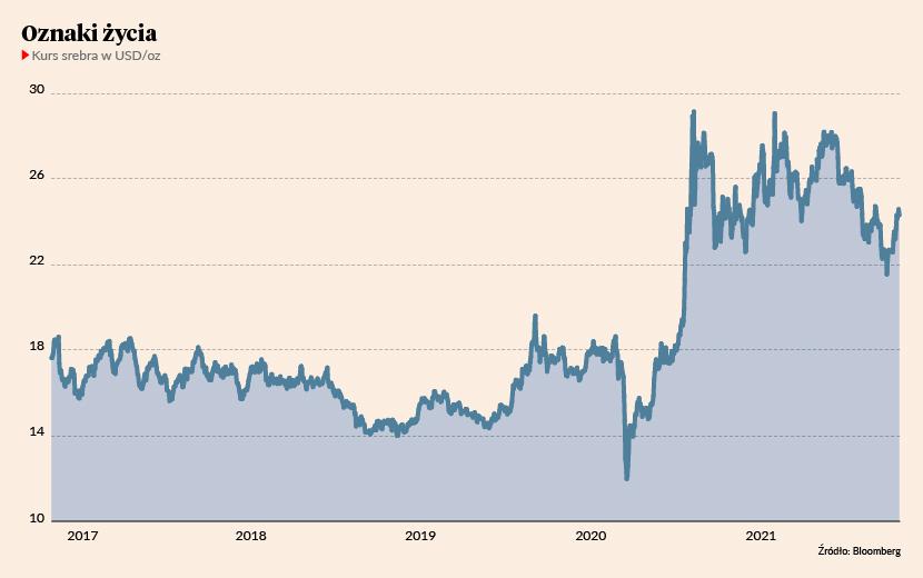 Można zaryzykować tezę, że już w pierwszej fazie postcovidowego boomu oba metale zdyskontowały tegoroczną inflacyjną falę. Zatem o ile rosnące ceny surowców są przejawem bieżącej inflacji, to zmiany cen złota i srebra są miernikiem oczekiwanej przyszłej inflacji. Jeśli to założenie jest poprawne, to w tym roku w cenach kruszców zostało uwzględnione przyszłoroczne zacieśnienie polityki monetarnej Rezerwy Federalnej oraz wyhamowanie inflacji i być może jakaś surowcowa korekta, albo nawet bessa. W takim ujęciu rynek myśli teraz już o roku 2023 i kolejnej fali monetarnej stymulacji. Lecz tym razem sygnał do nowej hossy może dać nie złoto, ale srebro.