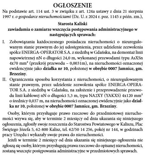 Starosta Kaliski zawiadamia o zamiarze wszczęcia postępowania administracyjnego Komunikat partneraopublikowano: 2025-12-18 15:40.PosłuchajZostań subskrybentemi słuchaj tego oraz wielu innych artykułów w pb.pl FOT.