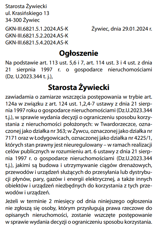 Starosta Żywiecki zawiadamia Komunikat partneraopublikowano: 2024-02-07 13:42PosłuchajZostań subskrybentemi słuchaj tego oraz wielu innych artykułów w pb.pl