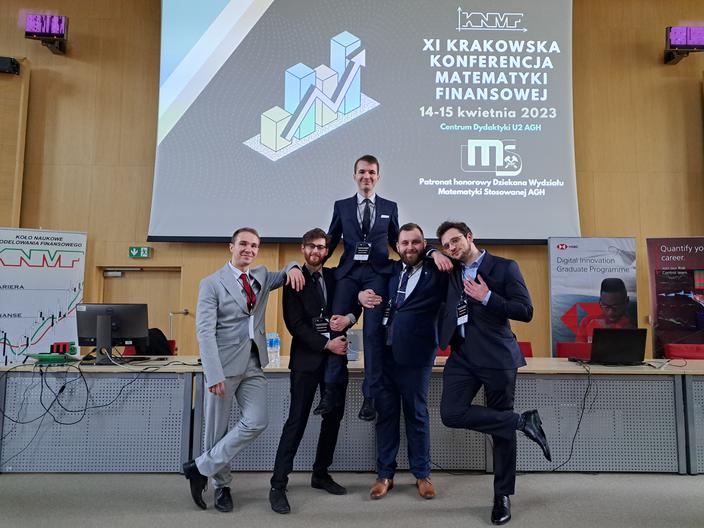 Koło Naukowe Modelowania Finansowego działa przy Wydziale Matematyki Stosowanej AGH od ponad 20 lat. Jego najważniejszą inicjatywą jest organizacja corocznej Krakowskiej Konferencji Matematyki Finansowej, której celem jest poszerzanie wiedzy uczestników na temat zastosowań metod i modeli matematycznych na rynku finansowym.