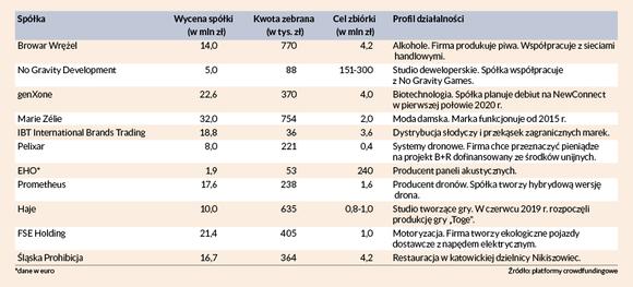 Rozrzut branżowy jest bardzo duży: na rynku są twórcy gier, projektanci mody damskiej i przedstawiciele sektora spożywczego — od browarów przez słodycze po restauracje. Coś dla siebie znajdą także pasjonaci biotechnologii i dronów. Pieniądze można także powierzyć zarządowi producenta paneli akustycznych, a po kapitał sięga także wytwórca elektrycznych aut dostawczych.