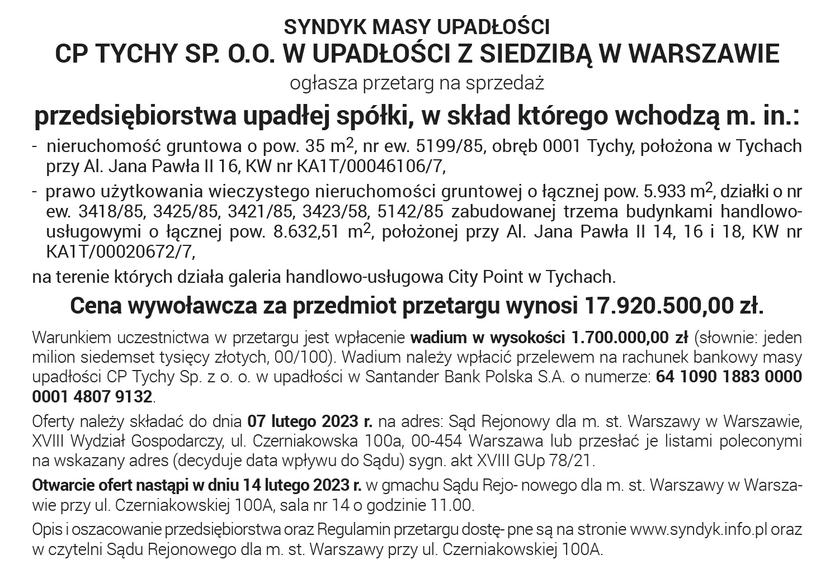 Syndyk Masy Upadłości Komunikat partneraopublikowano: 2022-12-14 14:20PosłuchajZostań subskrybentemi słuchaj tego oraz wielu innych artykułów w pb.pl
