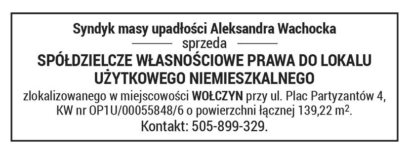 Syndyk masy upadłości Aleksandra Wachocka sprzeda Komunikat partneraopublikowano: 2022-10-20 14:35PosłuchajZostań subskrybentemi słuchaj tego oraz wielu innych artykułów w pb.pl