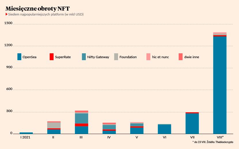 Popularność internetowych zwierzaczków rosła tak szybko, że w pewnym momencie zaczęła stanowić 10 proc. wszystkich transakcji wykonywanych w sieci Ethereum. W wyniku rosnącego popytu twórcy architektury zwiększyli jej wydajność, umożliwiając wykonanie większej ilości transakcji na minutę. Z popularności zapragnęły skorzystać kolejne podmioty, przez co wkrótce zaczęły się mnożyć serwisy i portale umożliwiające handel NFT – to wtedy powstały najpopularniejsze dziś OpenSea i SuperRate. Powszechne stało się tworzenie tokenów, a względna tego prostota doprowadziła do rekordowej podaży internetowych aktywów.