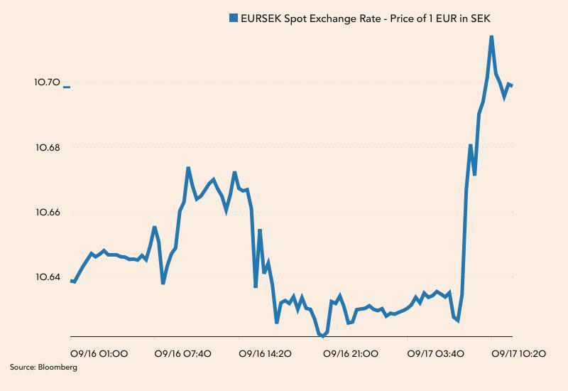 Większość ekonomistów oczekuje obecnie, że Riksbank skoryguje swoje „forward guidance” w kierunku uwzględniającym globalne środowisko monetarnej i słabnięcie tempa wzrostu. Niedawne dane o PKB pokazały, że gospodarka Szwecji stanęła w miejscu w pierwszym półroczu.