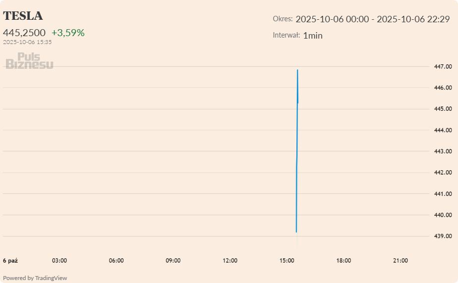Akcje Tesli wzrosły w poniedziałek o 2,5 proc. jeszcze przed rozpoczęciem regularnej sesji na Wall Street, około godziny 6:44 rano w Nowym Jorku (12:44 czasu polskiego). Odbicie to nastąpiło po spadkach z końca ubiegłego tygodnia, kiedy inwestorów rozczarowały dane o rekordowej, lecz trudnej do powtórzenia sprzedaży w minionym kwartale. Sytuację pogorszył fakt, że w USA wygasły subsydia dla kupujących samochody elektryczne.