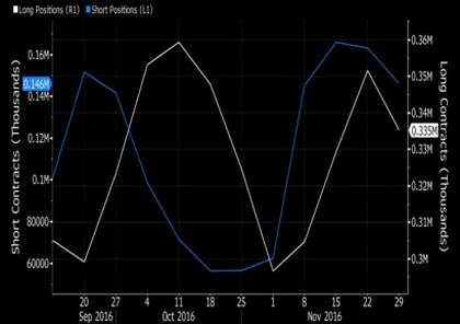 W tygodniu zakończonym na dzień przed posiedzeniem kartelu OPEC w Wiedniu z ubiegłej środy zarządzający hedge-fundów zredukowali pozycje nastawione na zwyżki cen ropy WTI o blisko 5 proc., wynika z danych komisji CFTC. To posunięcie okazało się nietrafne, bo od tamtego czasu notowania surowca poszły do góry o 13 proc. W ubiegłą środę kraje OPEC zdecydowały się na ograniczenie produkcji o 1,2 mln baryłek dziennie, a na kolejne 0,6 mln baryłek cięć przystały kraje spoza organizacji, w tym zwłaszcza Rosja.