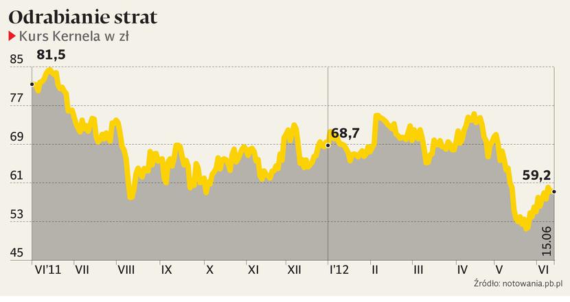 Od połowy maja do początku czerwca kurs Kernela spadł o 31 proc. To cena, jaką ukraiński producent oleju słonecznikowego oraz czołowy eksporter tamtejszego zboża musiał zapłacić za narażenie na szwank zaufania inwestorów. W maju Kernel obniżył bowiem o 15 proc., do 215 mln USD, prognozę zysku za rok obrachunkowy kończący się 30 czerwca. To wystarczyło, by inwestorzy odwrócili się od akcji niegdysiejszego ulubieńca parkietu (w latach 2009-10 kurs wzrósł o blisko 500 proc.), a notowania zapikowały.