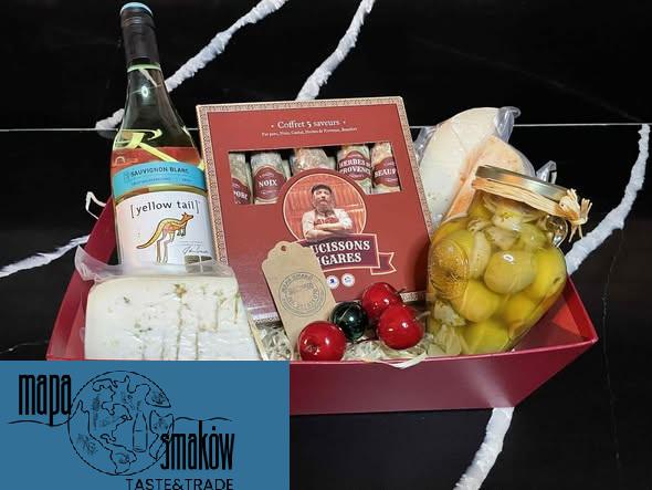 Mapa Smaków to idealna propozycja dla tych, którzy chcą podarować prezent pełen kulinarnych emocji i wspomnień z podróży. Marka specjalizuje się w wyjątkowych, najwyższej jakości produktach z różnych zakątków świata, które przywodzą na myśl ” niezapomniane chwile spędzone przy wspólnym stole. Kosz dla koneserów wina to elegancki zestaw zawierający m.in. wytrawne białe wino Yellow Tail (Australia), box francuskich kiełbas (575g), długo dojrzewające sery kozie oraz oliwki królewskie w zalewie babuni – o mięsistej konsystencji i wyrazistym aromacie czosnku, cebuli i natki pietruszki. Możliwa jest również personalizacja koszy. Podaruj prawdziwą ucztę dla zmysłów.