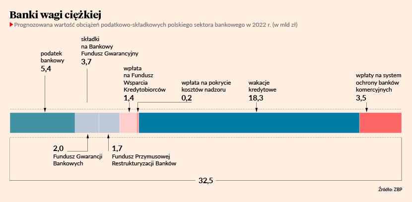 Na początku roku analitycy szacowali, że zysk netto sektora (bez uwzględnienia rezerw na kredyty we frankach) sięgnie 20 mld zł i będzie wyższy od ubiegłorocznego o ok. 30 proc. Pomóc miały rosnące stopy procentowe, które faktycznie wystrzeliły do 6,5 proc. Nikt jednak wówczas nie wiedział, żew rząd szykuje wakacje kredytowe. Ta przykra dla banków niespodzianka w tym roku będzie kosztowała 18,3 mld zł. Wraz z podatkiem i innymi składkami z sektora odpłynie 32,5 mld zł.
