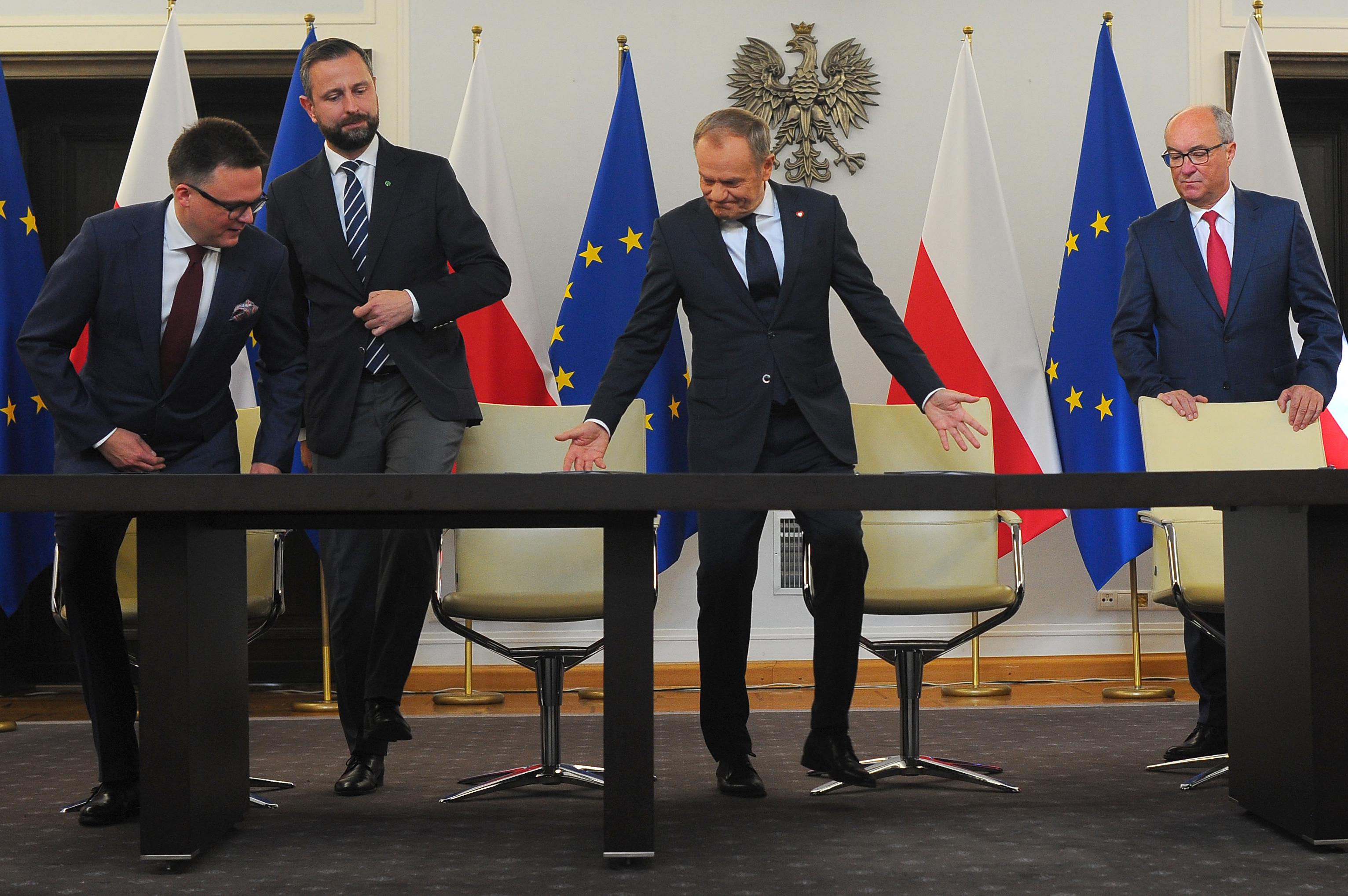 Wypada cofnąć się do 10 listopada 2023 r., gdy w wigilię Narodowego Święta Niepodległości umowę założycielską zawarło tzw. konsorcjum 15 października. Od początku używam tego określenia biznesowego, ponieważ uważam je za bardziej merytoryczne od koalicji. Paradoks polegał na tym, że liderem jest samodzielnie Donald Tusk, natomiast mniejszościowych udziałowców ma po każdej stronie aż po dwóch – Władysław Kosiniak-Kamysz i Szymon Hołownia oraz Włodzimierz Czarzasty i Robert Biedroń. Już sama liczba ambitnych prezesów i przewodniczących bardzo utrudnia efektywną współpracę. Wspomniana umowa objęła 24 punkty i skoncentrowała się na rozliczeniu rządów PiS, mediach publicznych, praworządności, pieniądzach z Krajowego Planu Odbudowy i Zwiększania Odporności.