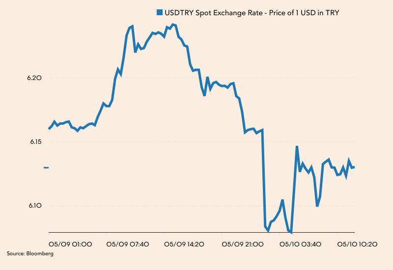 Turecka waluta słabła przez 13 z 14 ostatnich tygodni. W ostatnim czasie powodem przeceny było ogłoszenie powtórzenia wyborów w Stambule, przegranych pod koniec marca przez partię prezydenta Recepa Tayyipa Erdogana. Wywołało to obawę odsunięcia w czasie działań poprawiających stan tureckiej gospodarki. Od końca marca lira osłabła o prawie 10 proc. i była najmocniej tracącą walutą w tym okresie.