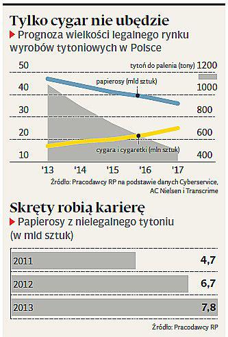 Tymczasem nielegalny rynek odpowiada już za nawet 25 proc. konsumpcji wyrobów tytoniowych, a budżetowe straty z tego tytułu szacowane są na 4,6 mld zł. Pracodawcy RP sugerują, że walczyć z nim można dzięki wprowadzeniu mechanizmów kontroli obrotem liśćmi tytoniowymi od plantatora aż po punkty sprzedaży detalicznej i ograniczając podwyżki akcyzy.