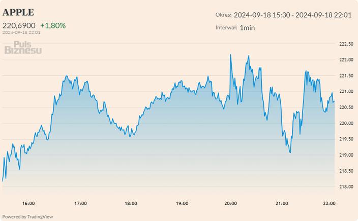 Akcje Apple zwyżkują w czwartek o 1,6 proc., osiągając cenę 224,25 USD przed rozpoczęciem sesji. Ogłoszenie UE potwierdziło wcześniejsze informacje podane przez agencję Bloomberg.