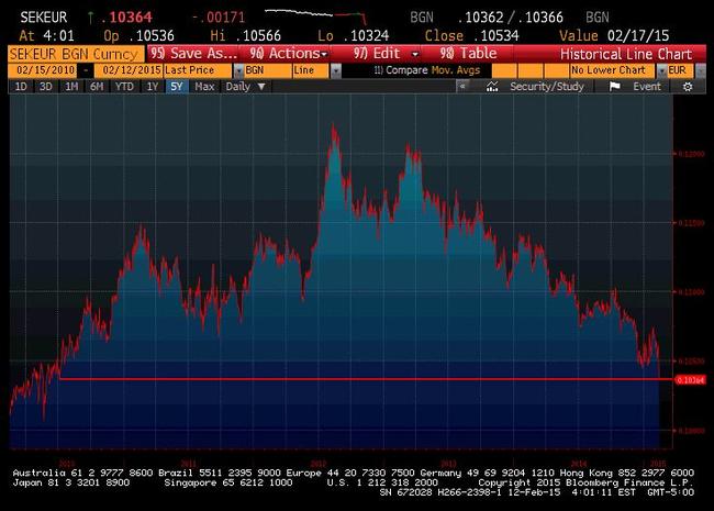 Krótko po decyzji banku centralnego szwedzka korona zanotowała pięcioletnie minimum wobec euro.