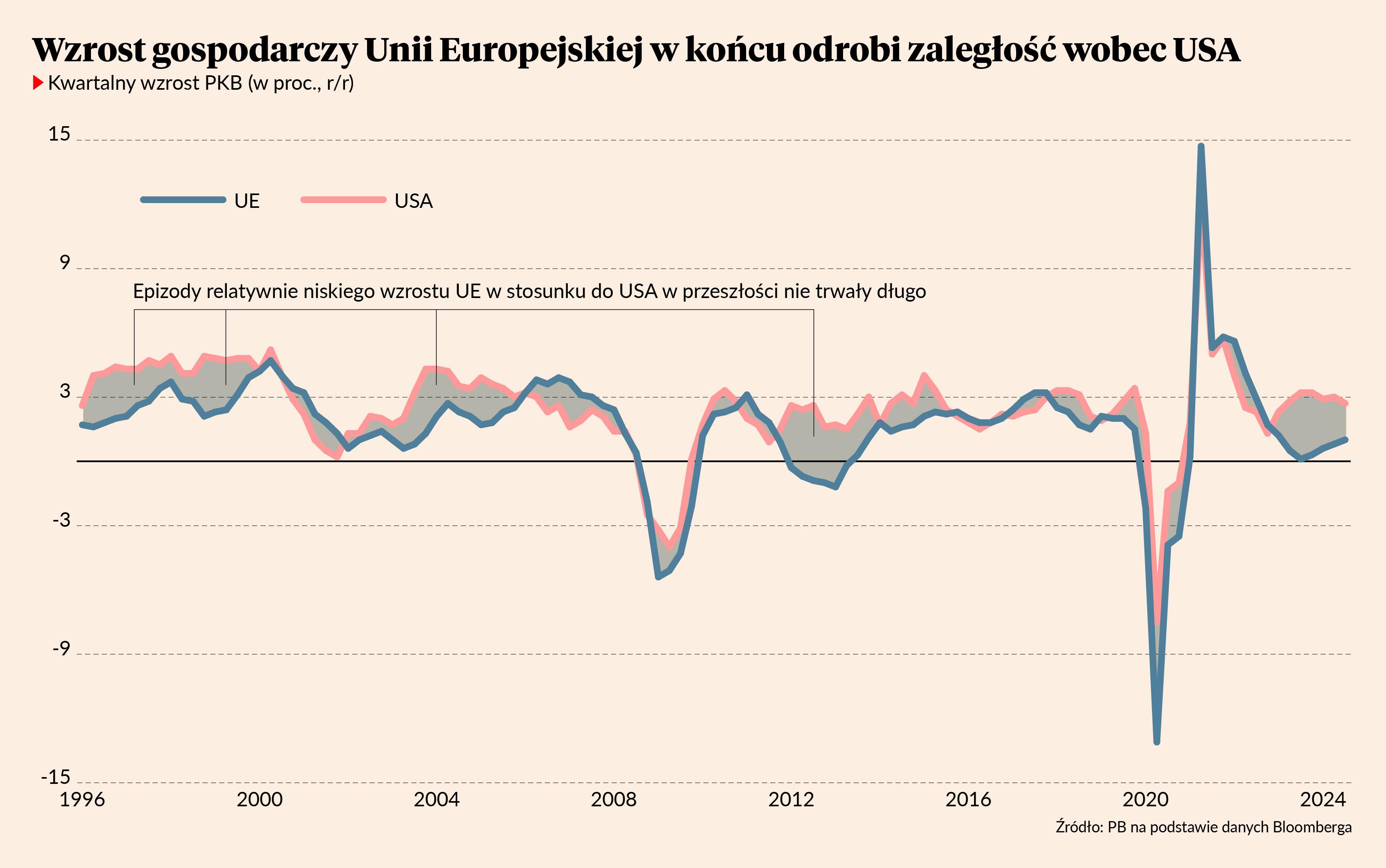 - Europa jest pogrążona w kryzysie politycznym, ale wiele jej problemów ma charakter cykliczny, a nie strukturalny, i te problemy powinny stopniowo przemijać. Przede wszystkim polityka wysokich stóp procentowych i redukcji deficytów budżetowych dusiła popyt konsumpcyjny i inwestycyjny. Restrykcyjna polityka pieniężna i fiskalna były pewną ceną, którą kraje UE zdecydowały się zapłacić za zbicie inflacji i ustabilizowanie długu publicznego po pandemii. Teraz jednak EBC szybko redukuje stopy procentowe, a rządy, średnio rzecz biorąc, ograniczają skalę zaciskania pasa w budżetach. Weźmy jako przykład Niemcy, które ewidentnie zmagają się z koniecznością korekty modelu rozwoju opartego głównie na eksporcie. Nikt mnie nie przekona, że kraj, w którym aktywność w budownictwie mieszkaniowym spada o prawie 20 proc. rocznie, ma wyłącznie problem z eksportem. Wysokie realne stopy procentowe oraz głęboka redukcja deficytu fiskalnego mocno dusiły niemiecką gospodarkę i przynajmniej w tym zakresie istnieje duże pole do poprawy.