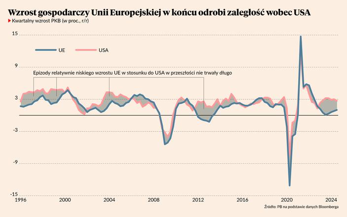- Europie powinno się udzielić choć trochę amerykańskiego optymizmu technologicznego. Po pandemii niektórzy ekonomiści stawiali tezę, że lata 20. XXI wieku mogą być podobne do lat 20. XX wieku, które nazwano słynnym terminem „roaring 20s” – wrzeszczącymi latami dwudziestymi. Wtedy po głębokim kryzysie związanym z wojną i pandemią przyszło ożywienie, w którym skumulowały się zarówno efekty cykliczne, jak też efekty postępu technologicznego związanego m.in. z elektryfikacją. Teraz USA też przechodziły cykl składający się z potężnego załamania gospodarczego wywołanego przez pandemię, silnej stymulacji gospodarki, szybkiego ożywienia i jednocześnie akumulacji efektów nowych technologii – w tym przypadku cyfrowych. Wrzeszczące lata 20. są jak najbardziej możliwe. Gospodarka USA notuje zaskakująco wysoki wzrost, a postęp technologiczny w zakresie AI wydaje się czymś więcej niż przejściową modą. Dawno nie było tak dużego rozdźwięku między optymizmem Amerykanów a pesymizmem Europejczyków i jest jak najbardziej możliwe, że Europa też zacznie korzystać na przemianach technologicznych inicjowanych w USA.