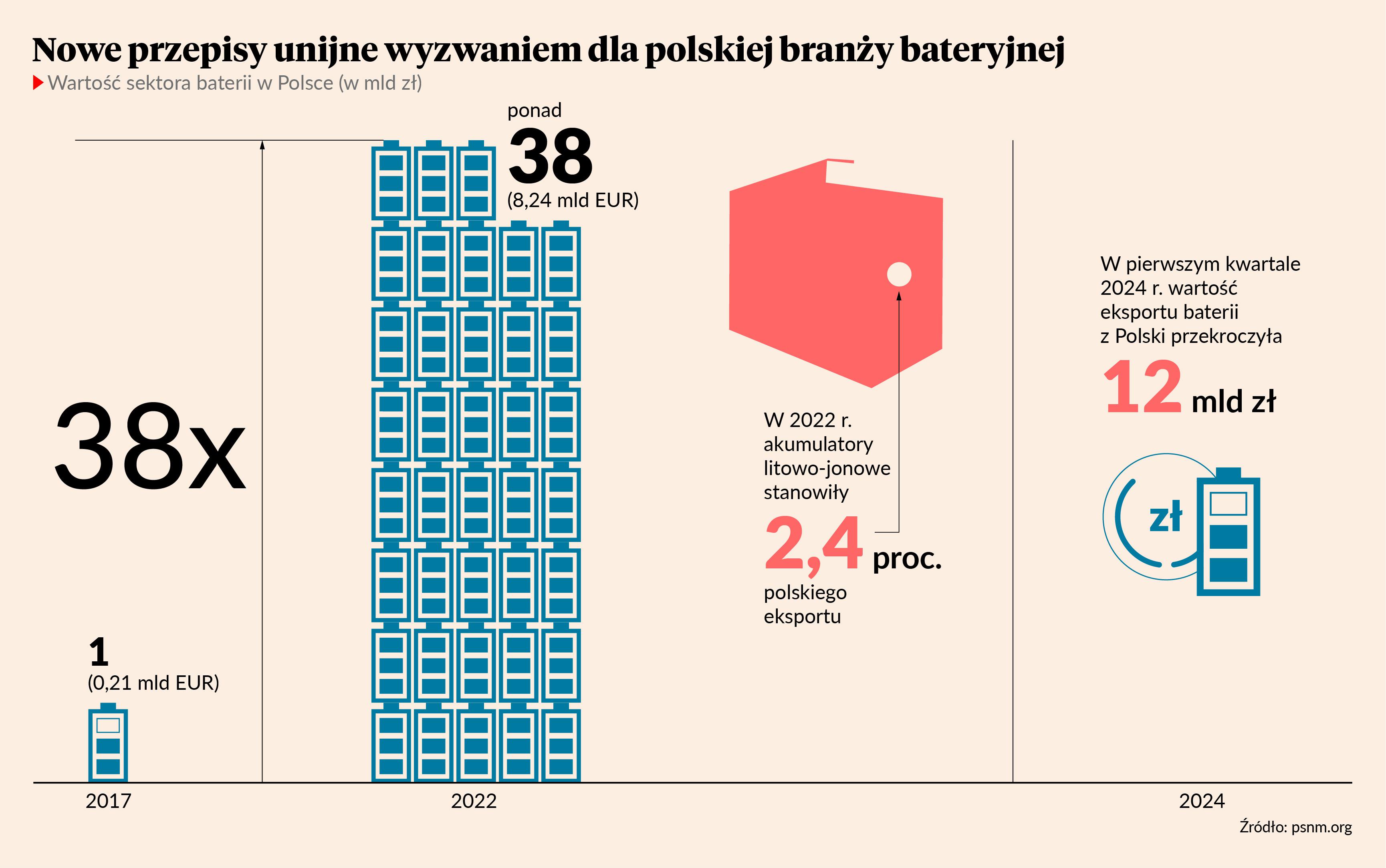 - To olbrzymie ryzyko dla polskiej gospodarki. Tylko w pierwszym kwartale wartość eksportu baterii z Polski przekroczyła 12 mld zł - ostrzega Maciej Mazur, szef PSNM.