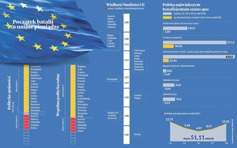 Według dotychczasowych zasad najwięcej pieniędzy otrzymywały regiony UE, których PKB nie przekraczał 75 proc. unijnej średniej — w przypadku naszego kraju dotyczyło to wszystkich regionów poza Warszawą z przyległymi powiatami. Po odejściu zamożnego Zjednoczonego Królestwa Wielkopolska, Śląsk, Dolny Śląsk i Pomorze może ten próg przekroczyć, co oznacza mniej pieniędzy na inwestycje. Mimo sprzeciwu Niemiec prawdopodobnie wspólna polityka rolna (WPR) będzie częścią budżetu w kolejnej perspektywie budżetowej, choć należy oczekiwać wyraźnej redukcji kwot, szczególnie dla rolników nieprowadzących ekologicznych upraw. Według propozycji Komisji Europejskiej udział WPR w całości budżetu ma spaść z 35 do około 28 proc.