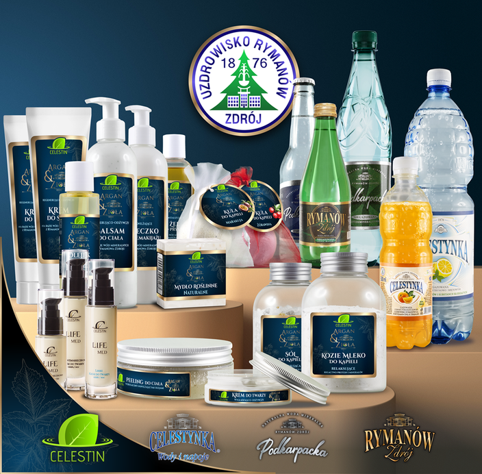 Najbardziej znane źródła w Uzdrowisku Rymanów to Celestyna, Tytus i Klaudia. Wysoka zawartość minerałów i naturalny CO₂ sprawiają, że wody te są wykorzystywane w kuracji pitnej, inhalacjach i kąpielach leczniczych. Wspomagają leczenie chorób górnych dróg oddechowych, narządów ruchu, układu nerwowego, moczowego oraz chorób wieku dziecięcego. Historia butelkowania wód sięga 1881 r., a od 40 lat Uzdrowiskowy Zakład Produkcji Wód wytwarza własne wody: Rymanów Zdrój, Celestynkę oraz Podkarpacką Naturalną Wodę Mineralną. Na ich bazie powstała też marka Celestin: to własna, uzdrowiskowa linia kosmetyczna, której produkty oparte są na wodach mineralnych z Rymanowa-Zdroju, wzbogaconych o surowce z upraw ekologicznych oraz wysokiej jakości oleje. Trzy serie kosmetyków: Argan & Zioła, LIFE MED – Złota Seria oraz Celestin For MEN obejmują kremy, olejki, balsamy i produkty do kąpieli, dopasowane do różnych typów skóry i jej potrzeb.