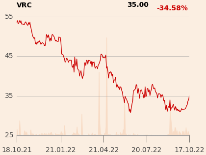 Spółka sprzedała akcje w pierwszej ofercie publicznej (IPO) w kwietniu 2021 r. po 45 zł, łącznie za 180 mln zł. Kurs w debiucie przekroczył 52 zł i utrzymał się na zbliżonym poziomie do listopada. Potem głównie spadał, a w ostatnich dniach wzrósł do ok. 34 zł, co daje ponad 0,7 mld zł kapitalizacji. Sobiesław Pająk, analityk DM BOŚ, w raporcie z 30 września obniżył cenę docelową dla Vercomu z 45,6 do 37,4 zł, podtrzymując rekomendację „kupuj”.