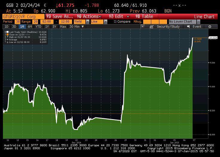 Niepokój inwestorów widać także na rynku długu. Rentowność 10-letnich obligacji Grecji wzrosła o 35 pkt bazowych i po raz pierwszy od września 2013 roku przekracza 10 proc. Rentowność „trzylatek” poszła w górę o 69 pkt bazowych i sięga 14,45 proc. Odwrócenie krzywej rentowności uznawane jest za niepokojący sygnał dla gospodarki.