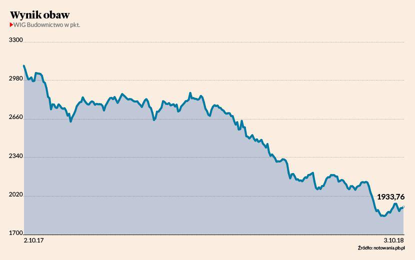 Jego zdaniem, zakończony właśnie sezon publikacji wyników za drugi kwartał potwierdził, że otocznie w branży budowlanej jest niekorzystne, a ryzyko negatywnych zaskoczeń na wynikach pozostaje wysokie. Inwestorom największy zawód sprawiły tym razem Elektrobudowa i Erbud. Pierwsza z firm została zmuszona do zawiązania ponad 60 mln zł rezerwy (i niemal tyle samo straty netto) z tytułu ewentualnej kary za opóźnienie w realizacji umowy z PKN Orlen. Notowania spółki, w której akcjonariacie dominują fundusze emerytalne, runęły i znalazły się na poziomie najniższym od — bagatela — 12 lat. Runął też kurs Erbudu, którego akcje stały się najtańsze w historii po zaksięgowaniu prawie 30 mln zł traty netto w pierwszym półroczu.