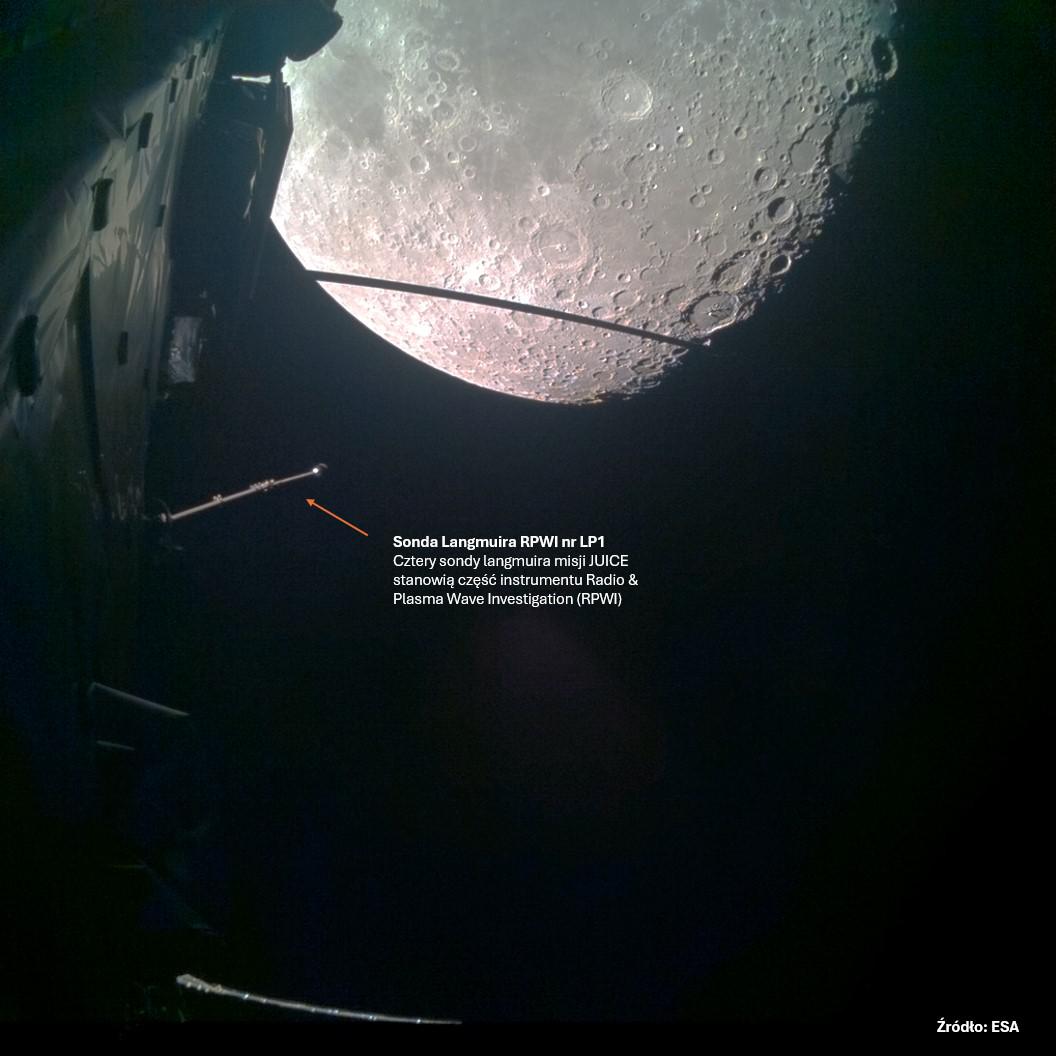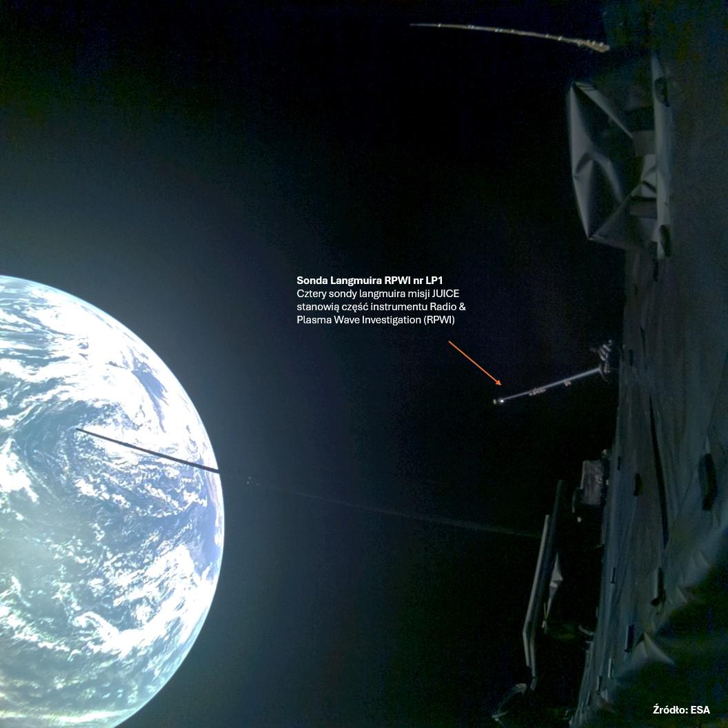 Dwa z opublikowanych przez ESA zdjęć ukazują na malowniczym tle Ziemi i Księżyca instrumenty wykonane w całości w Polsce. To tak zwana Sonda Langmuira, przyrząd do pomiaru parametrów plazmy, skonstruowany przez naukowców z CBK PAN i inżynierów z firmy Astronika. Obserwatorzy podróży sondy JUICE oczekują na podobne ujęcia z Wenus w tle w sierpniu 2025.