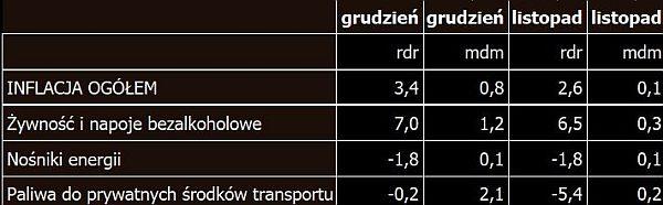 Poniżej wybrane składniki wskaźnika inflacji za grudzień i listopad: