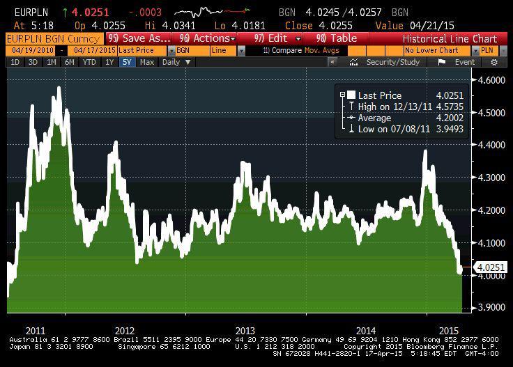 Notowania EUR/PLN od 2011 roku