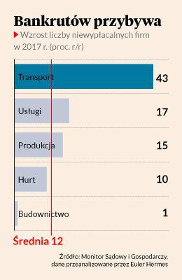 Niepokoi jednak dynamika wzrostu liczby upadłości (w minionym roku wniosła aż 43 proc.), zwłaszcza w świetle danych z Krajowego Rejestru Długów, z których wynika, że zadłużenie prawie jednej piątej polskich firm transportowych wynosi prawie 1 mld zł.